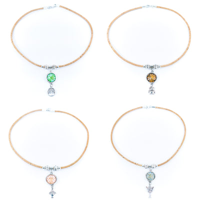 Handmade Cork Necklace - Dried Flower Collection women original wooden jewelry N-107-MIX-4