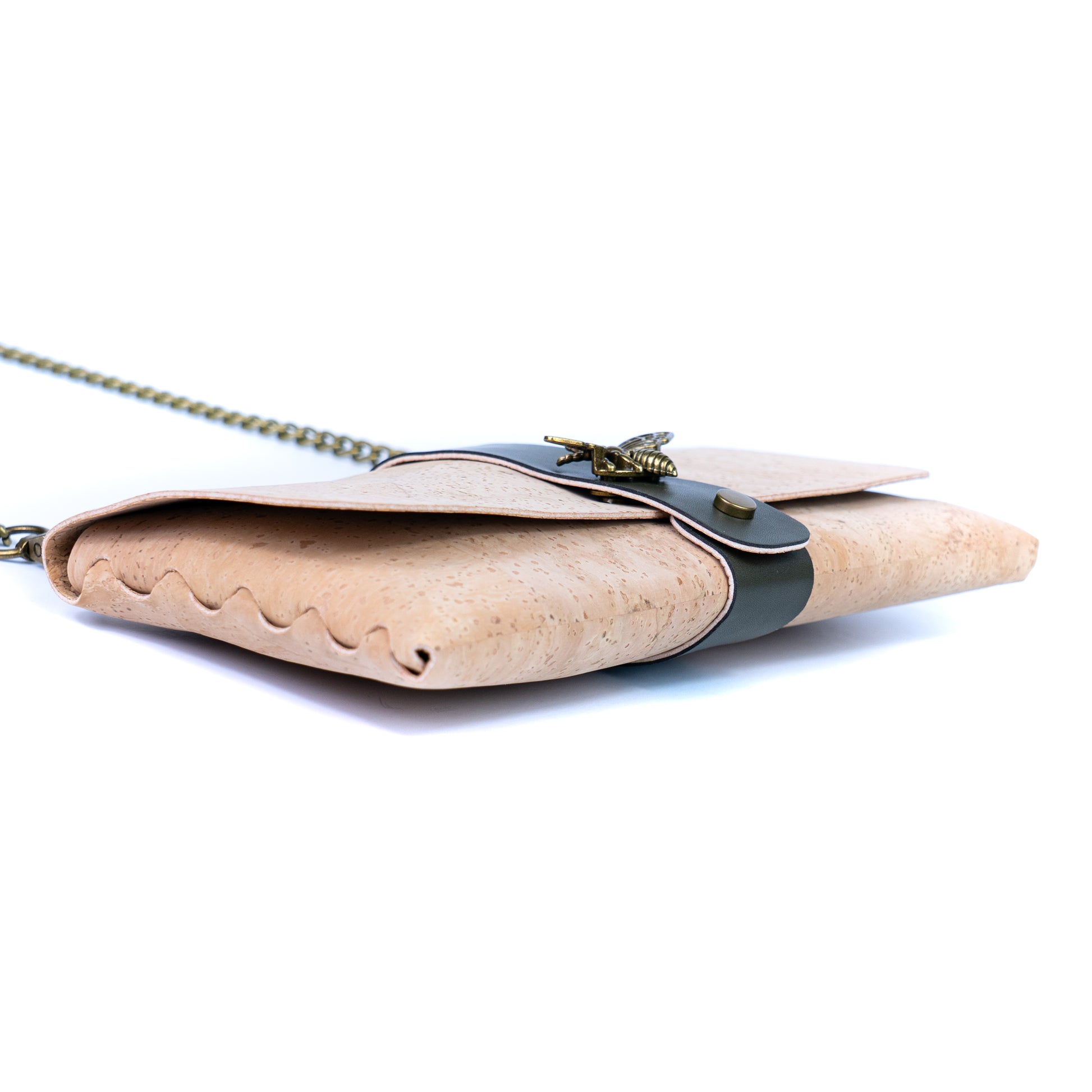 Natural Cork Crossbody Wallet with Chain Strap & Bee Charm BAG-2372
