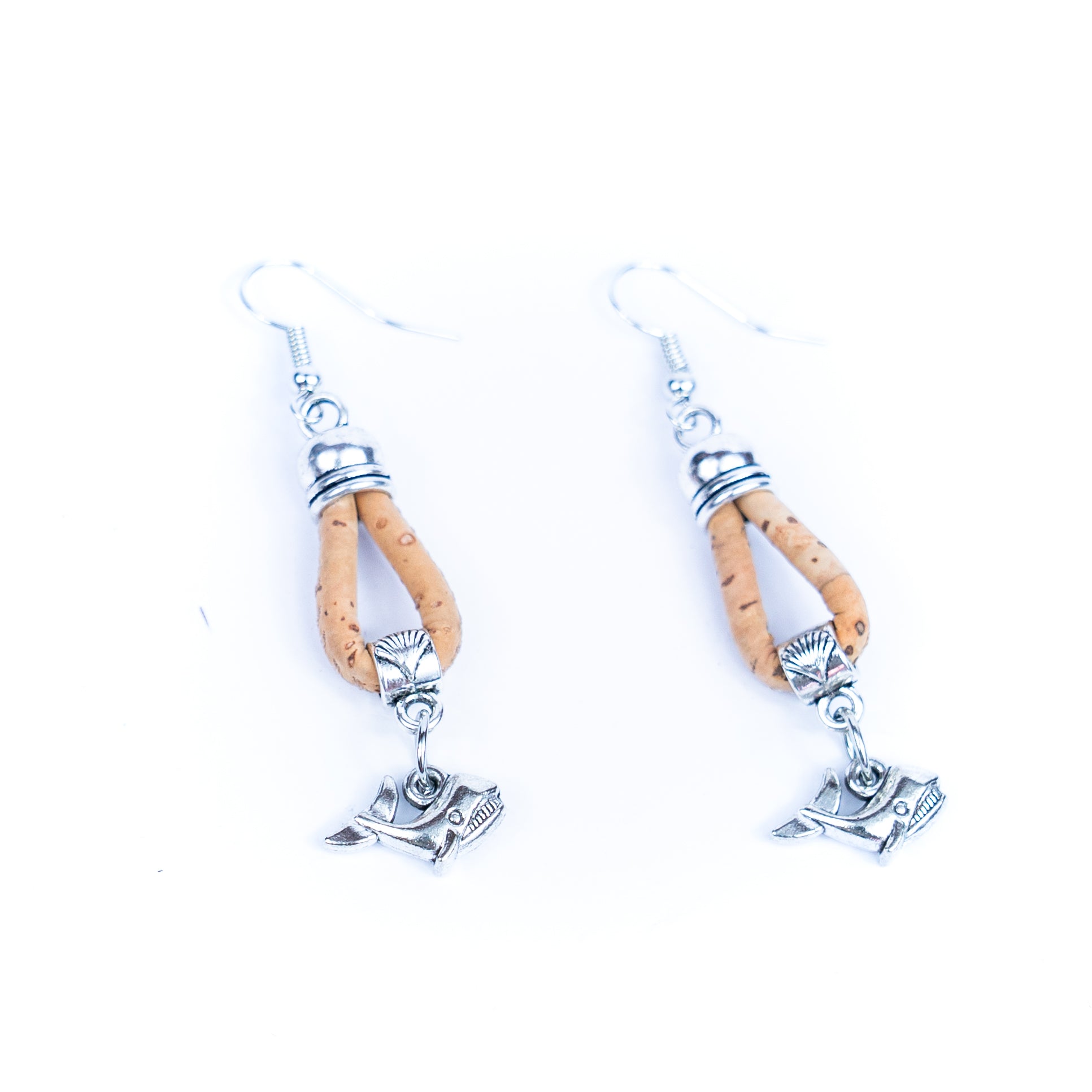 Our carefully designed women's fashion earrings combine natural and modern elements, featuring 3mm round cork wire in five colors and a delicate dolphin pendant. Cork cord colors include natural, orange, burgundy, green and yellow, which are both vibrant and deeply natural. Earrings highlight the wearer's personality and fashion sense with their unique designs and color combinations. The dolphin pendant symbolizes wisdom and friendliness, adding a touch of elegance and fun to these earrings. These earrings are perfect for the fashionable woman who is looking for a unique style and a blend of natural elements. Each pair of earrings is handmade, ensuring each piece is unique