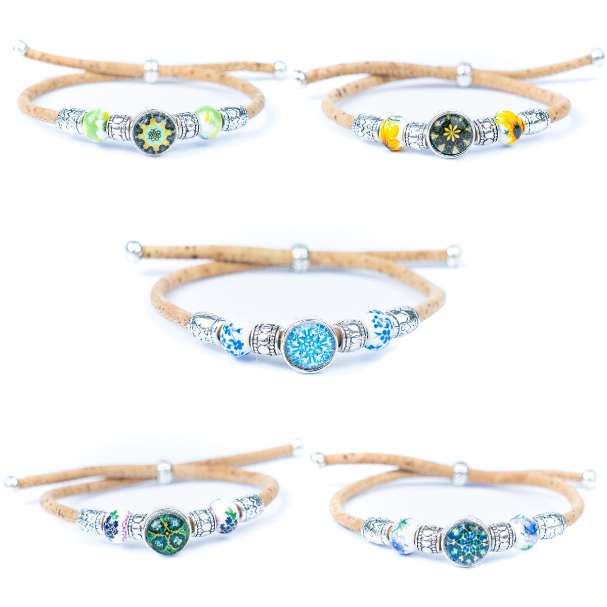 Natural cork cord and ceramic beads handmade women's fashion bracelet BR-456-MIX-5