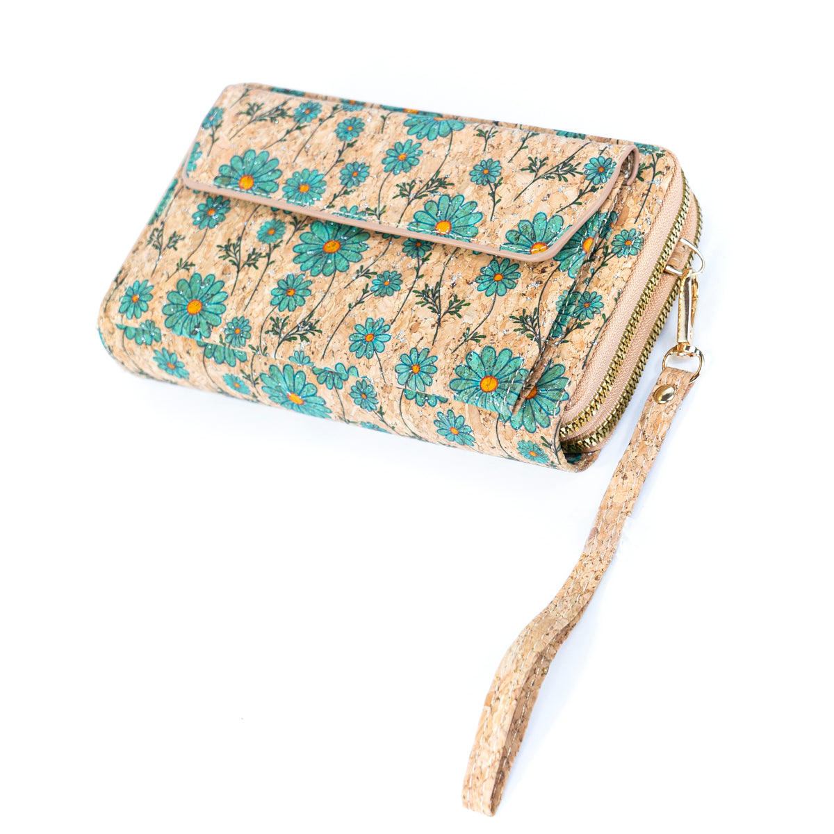 Women's Horizontal Cork Phone Bag, a stylish and eco-friendly accessory designed to keep your essentials organized and within reach. This versatile bag comes in five stunning patterns, including Blue Flowers, Sunflowers, Porcelain, and more, allowing you to choose the design that best complements your style.